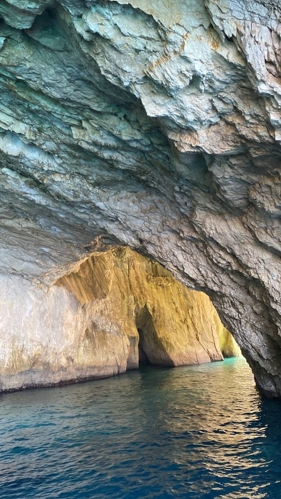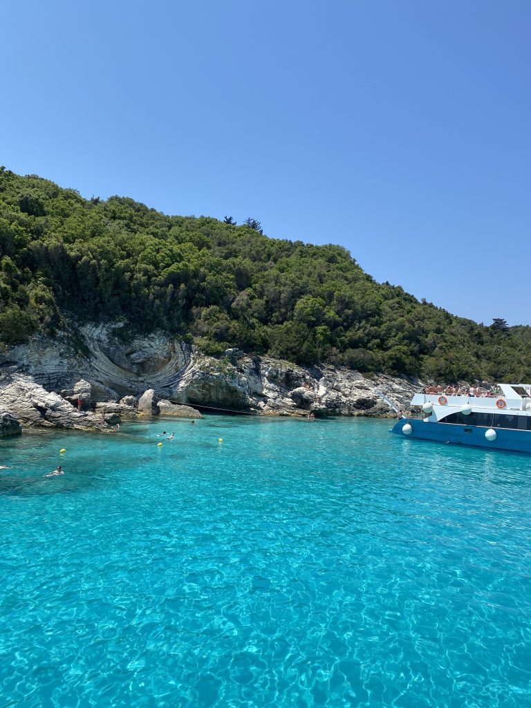 A full day cruise to the Blue Caves, Paxos, and Antipaxos. Your day starts off with jumping onto a large boat along with many other travellers, getting views of coastal cliffs and beaches heading out to sea. They take you to the blue caves, where the boat gets up real close – and if you’re right at the bow you get to see what it’s like inside. You then stop at Paradise beach in Antipaxos to dive off the boat, snorkel and swim around in the crystal clear waters. You then have free time to explore the coastal village of paxos, each some lunch and enjoy the amazing views.
